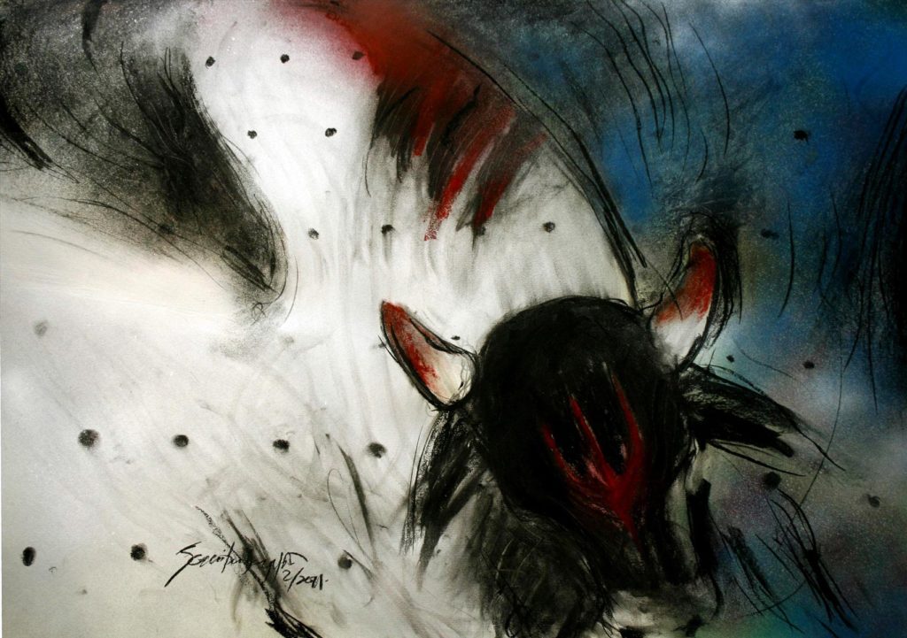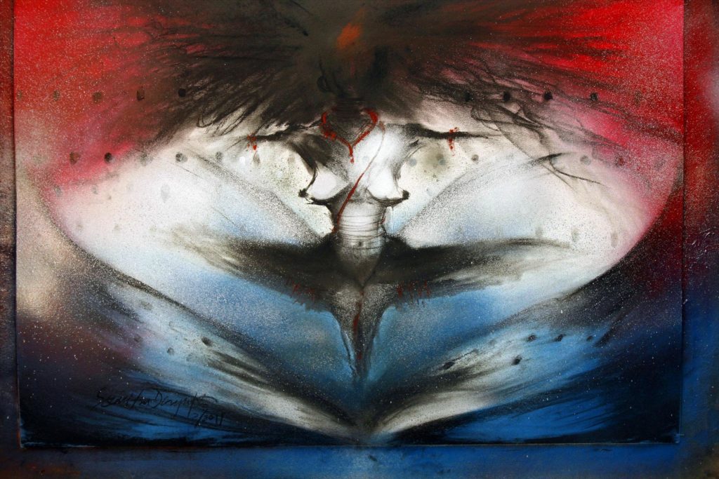 “I like the volatile nature of this fire painting process. It’s almost like being on the edge of a state of sleep and waking, where my awareness gets lost and a sense of identity dissolves. I don’t always know what will happen to the final painting, i have to trust in the flow of the flame and be open to the energy of the present moment” – Soumitra Dasgupta