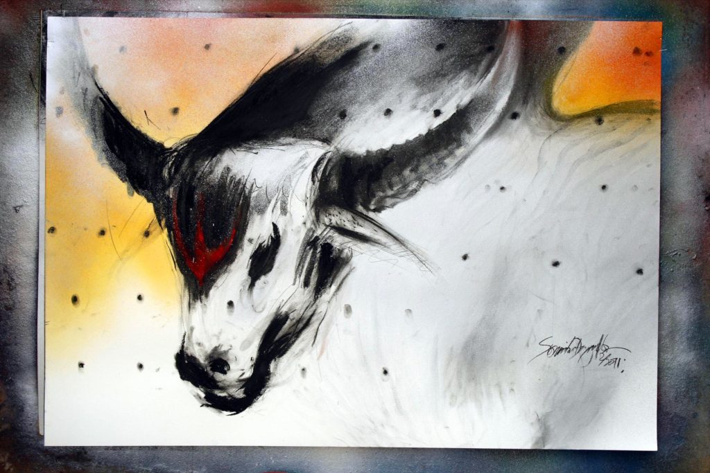 With a career spanning poetry, advertising, writing and film making, Soumitra’s varied exposure is reflected in the rather vibrant and revolutionary rendition of his subject. Part of the 1980 batch from the Government College of Art, Kolkata, Soumitra was always an emotionally charged painter, with a deep rooted association and sense of belonging with the Indian heartland. His biggest exploration is through his paintings charged with his own spiritual impetus.
